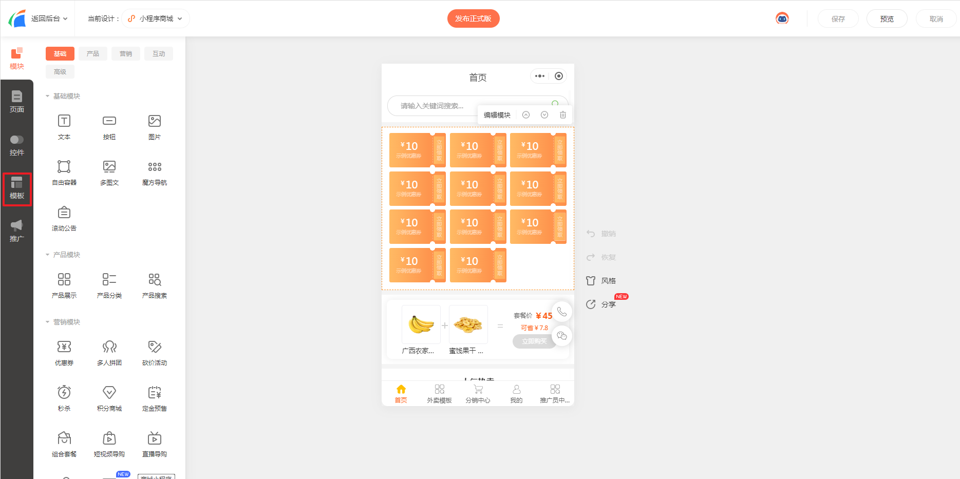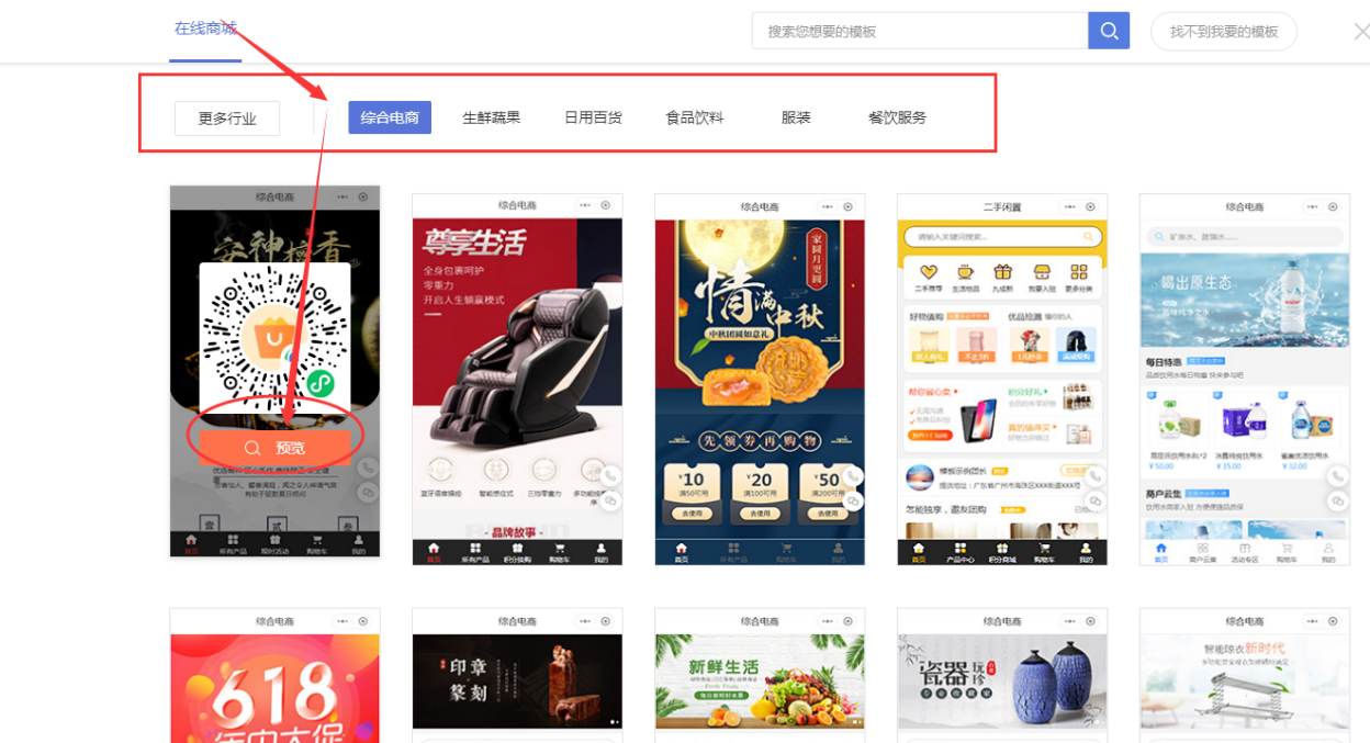 点击右侧【模板】,即可弹出模板选择界面,使用想要的模板-点击预览-最后再点击马上替换即可