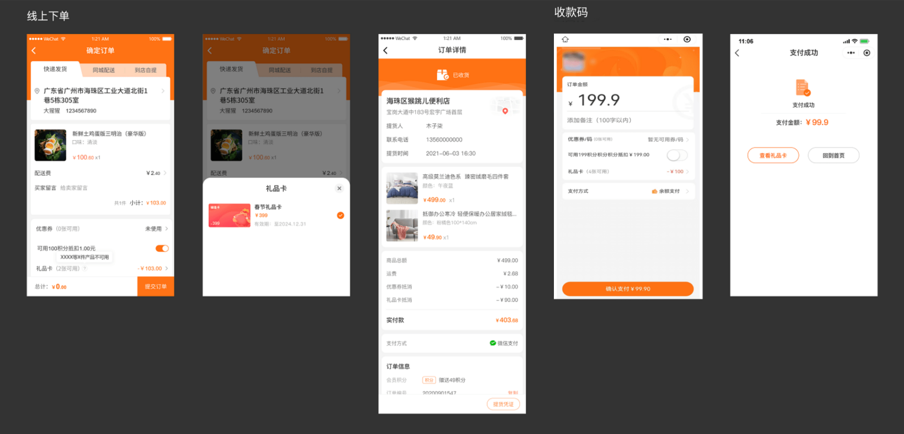 会员在下单结算时,可选择礼品卡抵扣订单金额(收款码功能介绍)。