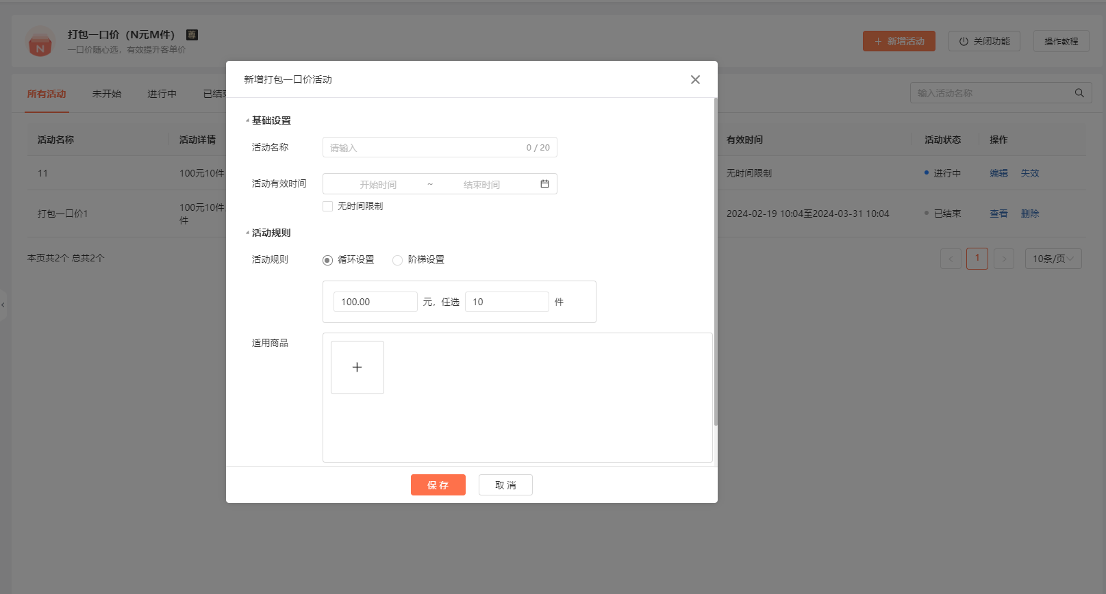 活动名称:自定义活动名称,商城后台可见,便于管理。