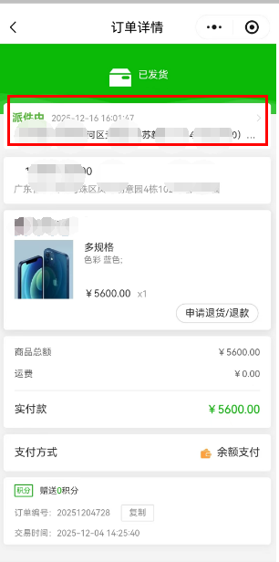③ 使用【常用物流公司】物流,会员即可从订单中查看到物流实时情况