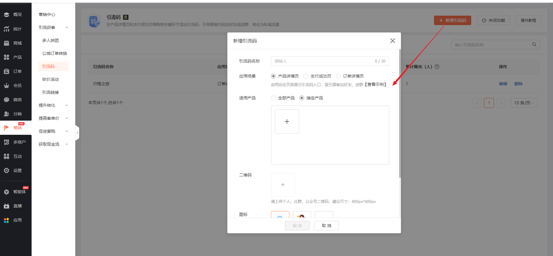 ① 引流码名称:自定义引流码的名称,商城后台可见,便于管理