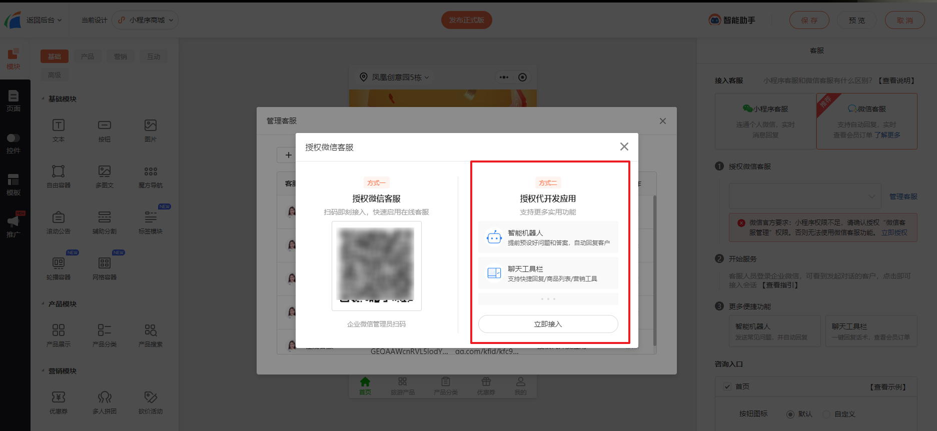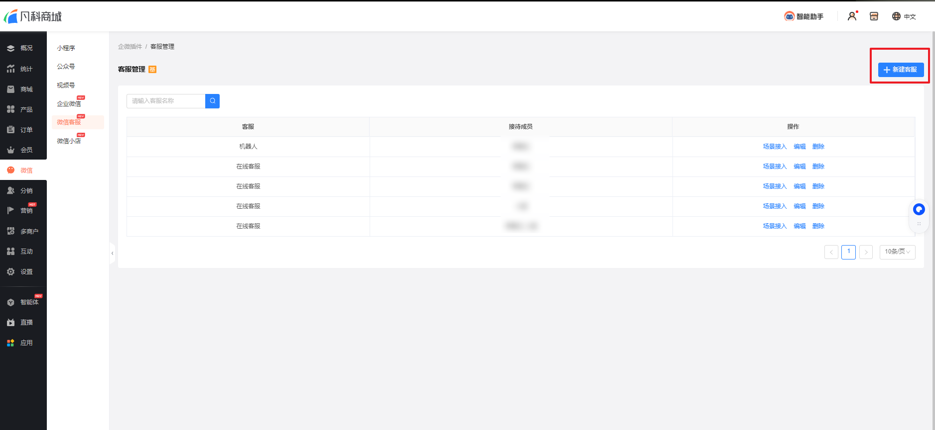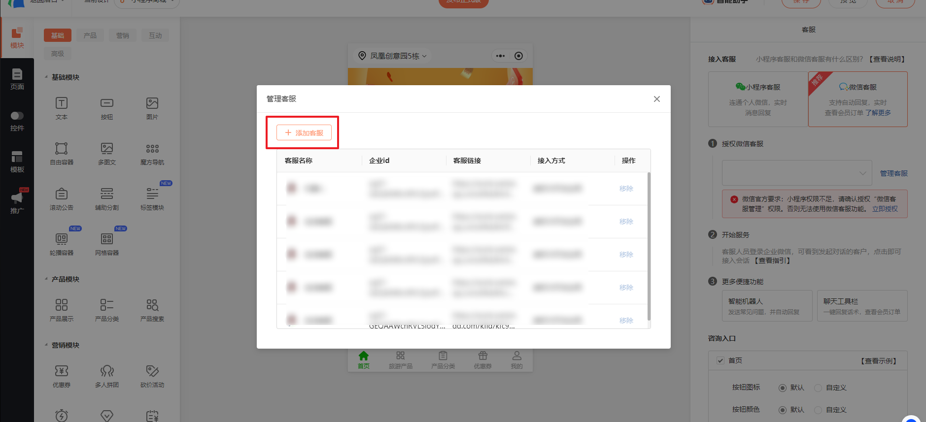 客服组创建完成后,在商城小程序找到客服进行设置