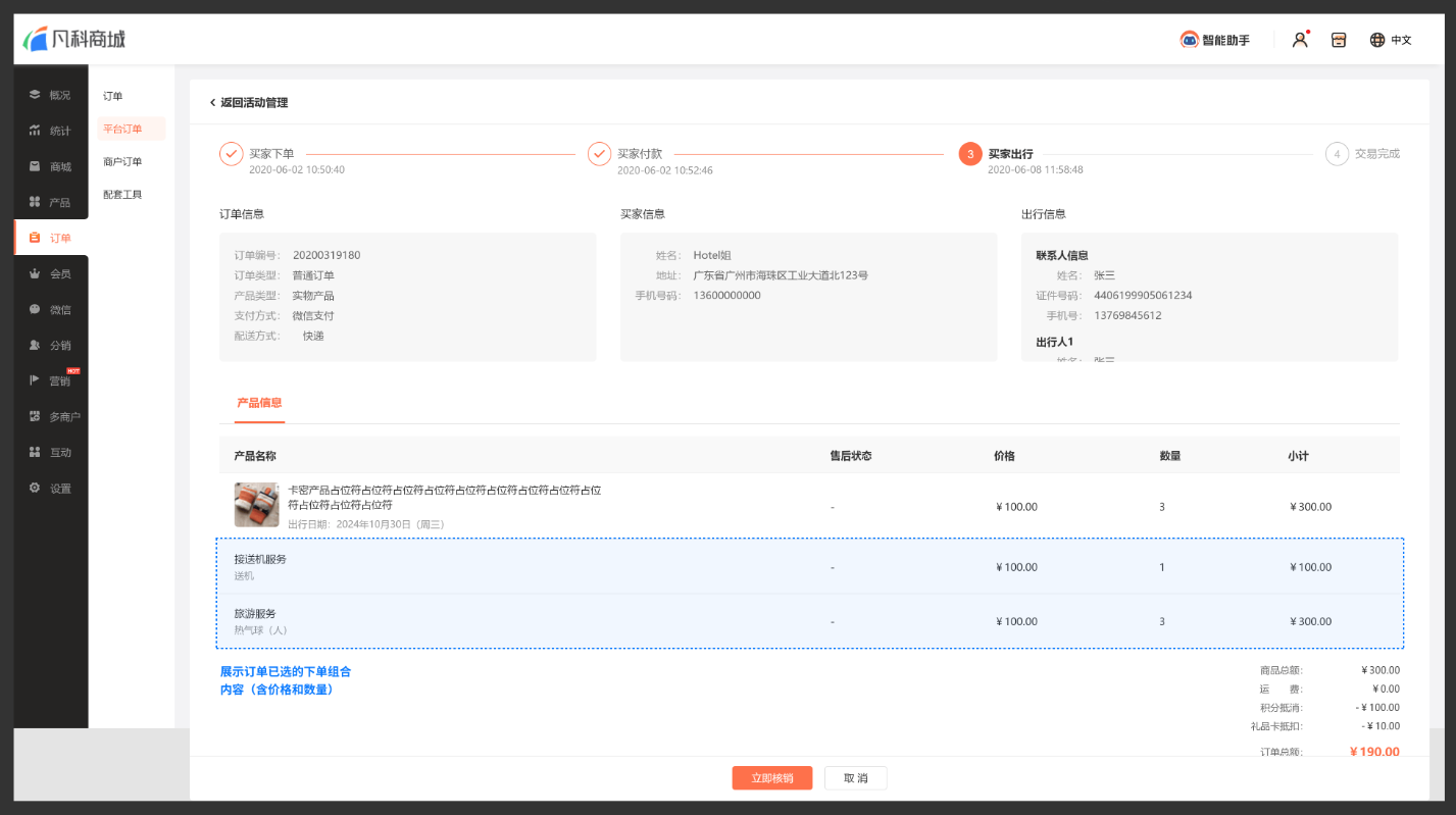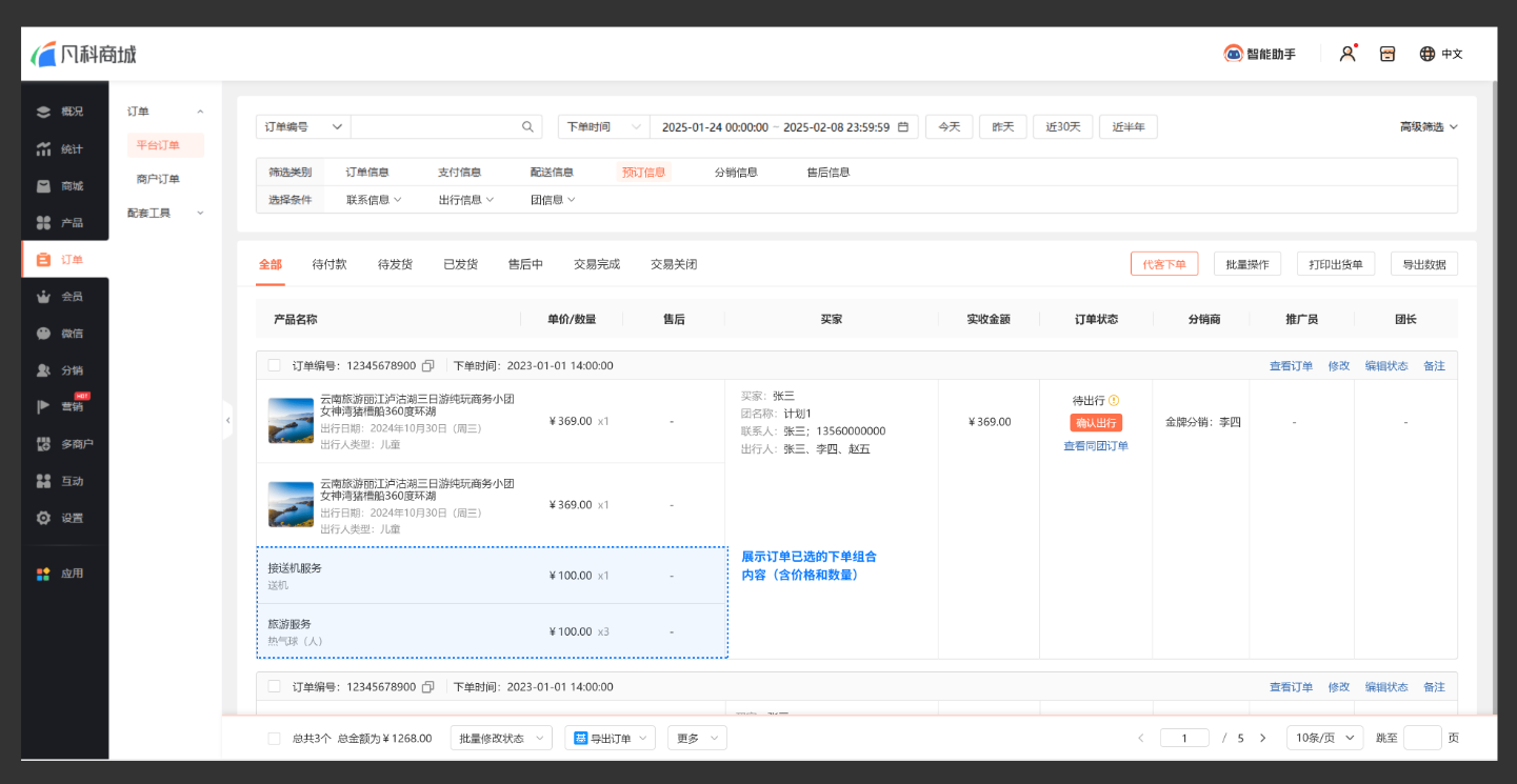 2.会员提交订单后,支持查看订单的下单组合内容: