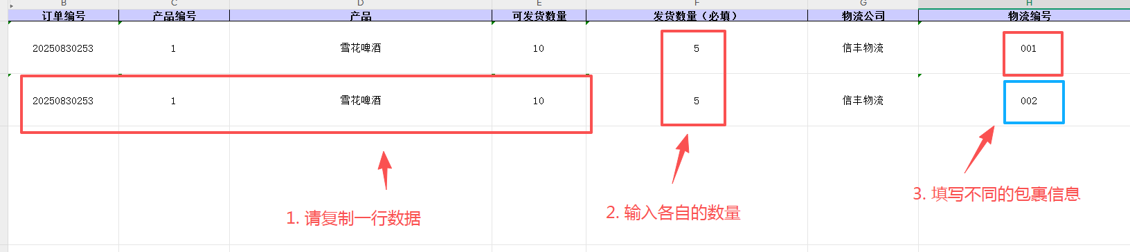 场景1:如一个订单内的某个商品的数量较多,需要进行拆单发货
