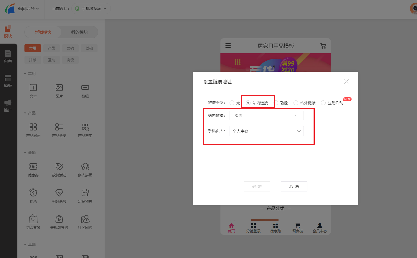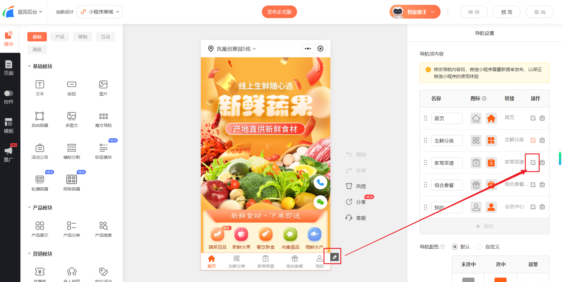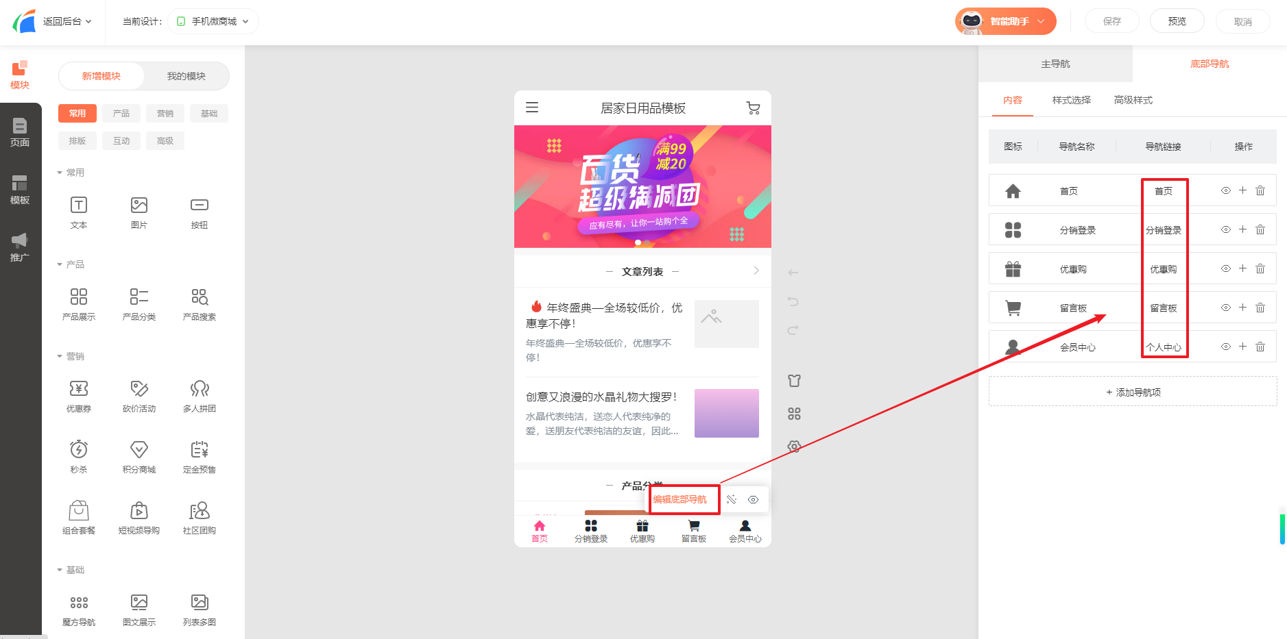 2.系统支持最多添加5个导航项目(即最多可关联5个页面显示导航)
