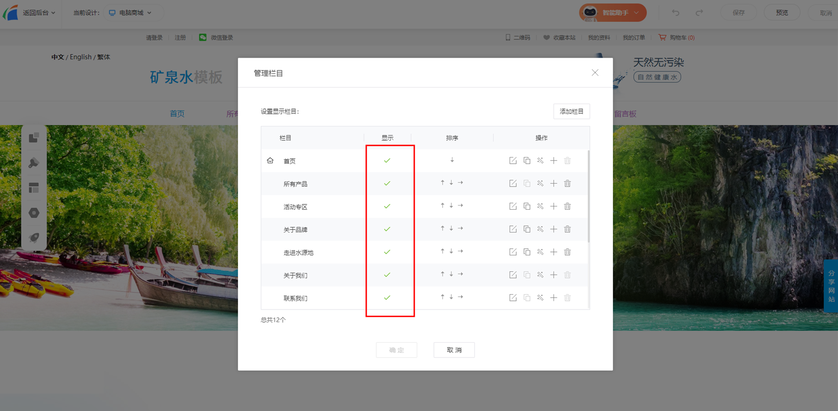 电脑版:在【管理栏目】中新增的栏目需手动开启显示开关,需在栏目设置中确认勾选【显示】选项,才会在前端页面正常展示。