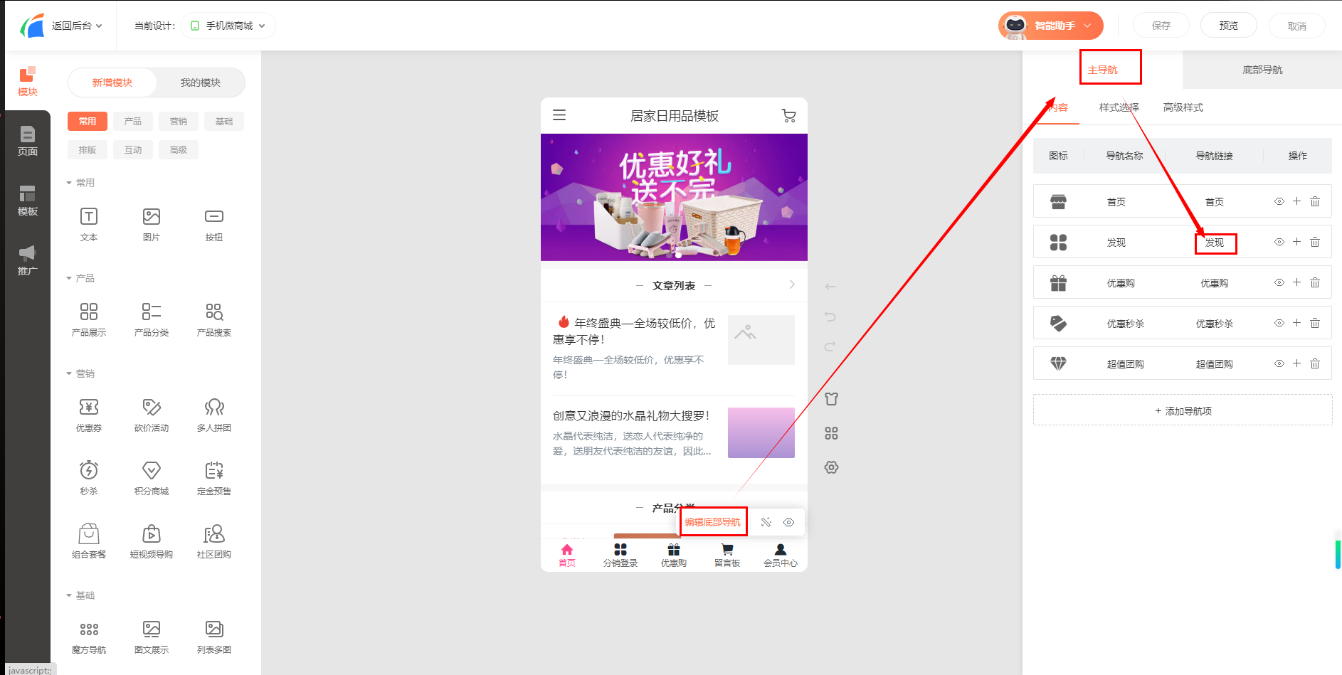 手机版:新增页面后,需在【主导航设置】或【底部导航设置】中手动添加超链接,将新增页面关联至导航菜单,完成设置后方可在前端显示。