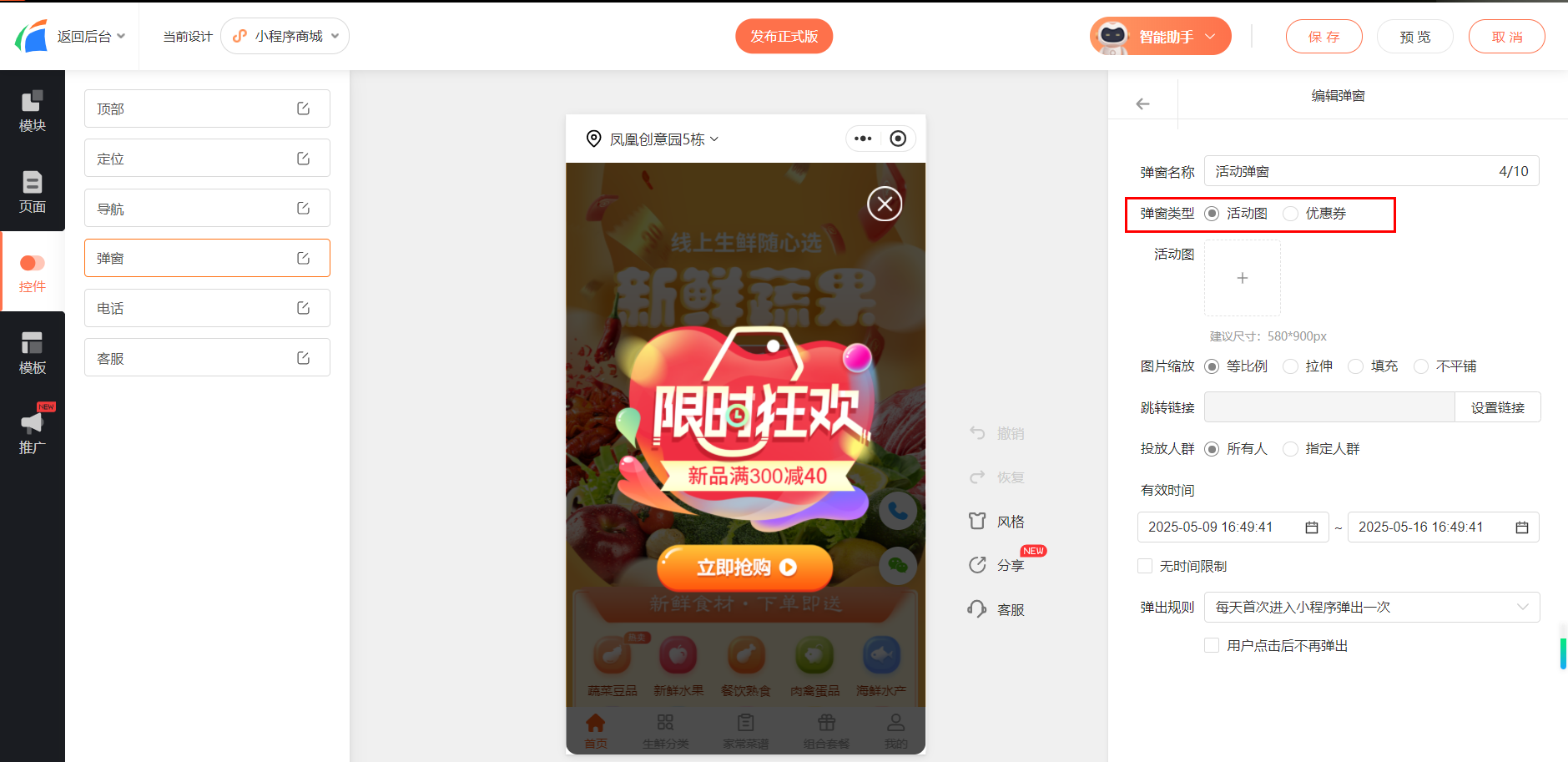 电脑版:可在设置中添加首页弹窗,选择需要显示的模块添加