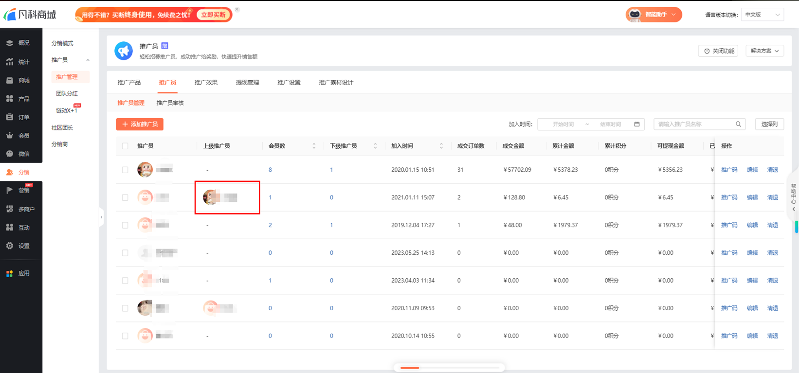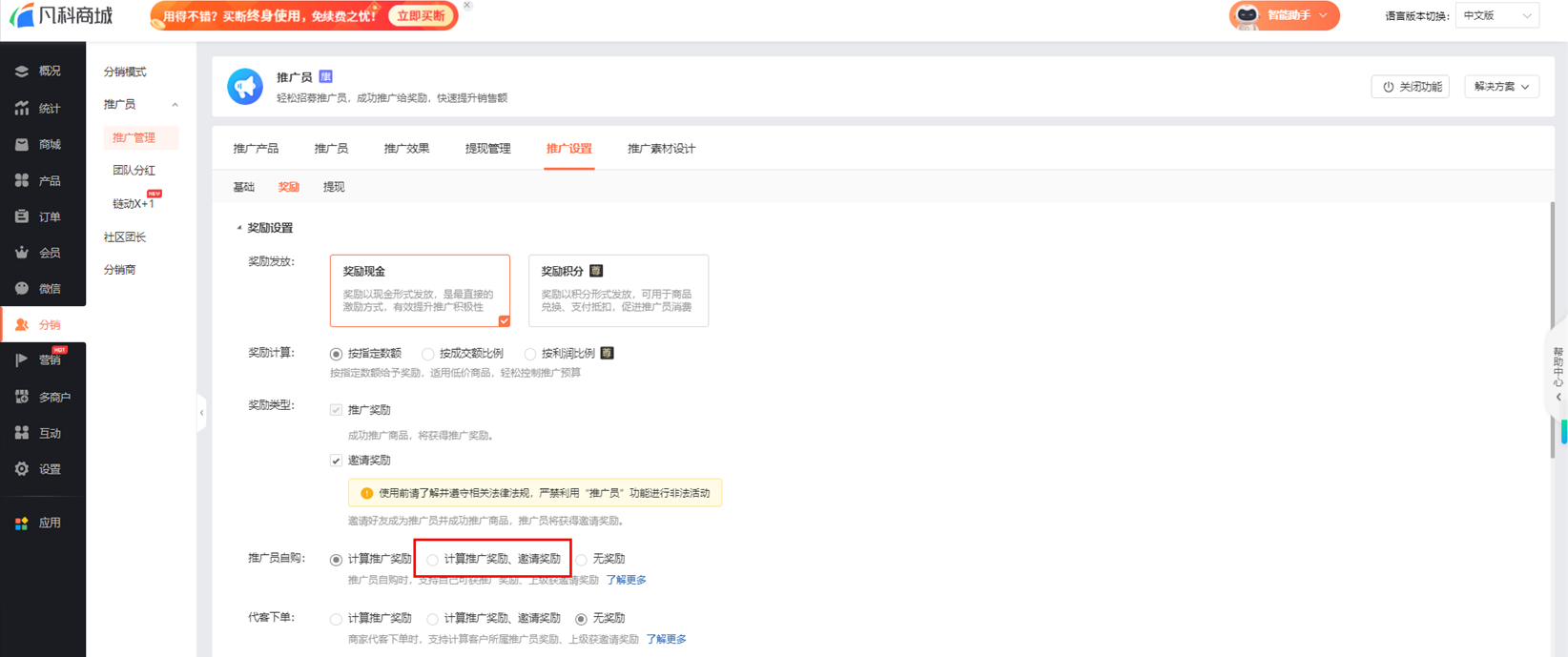 2.商家设置:商家开启了邀请奖励功能,才会给邀请下级推广员且有推广成果的一级推广员发奖励。