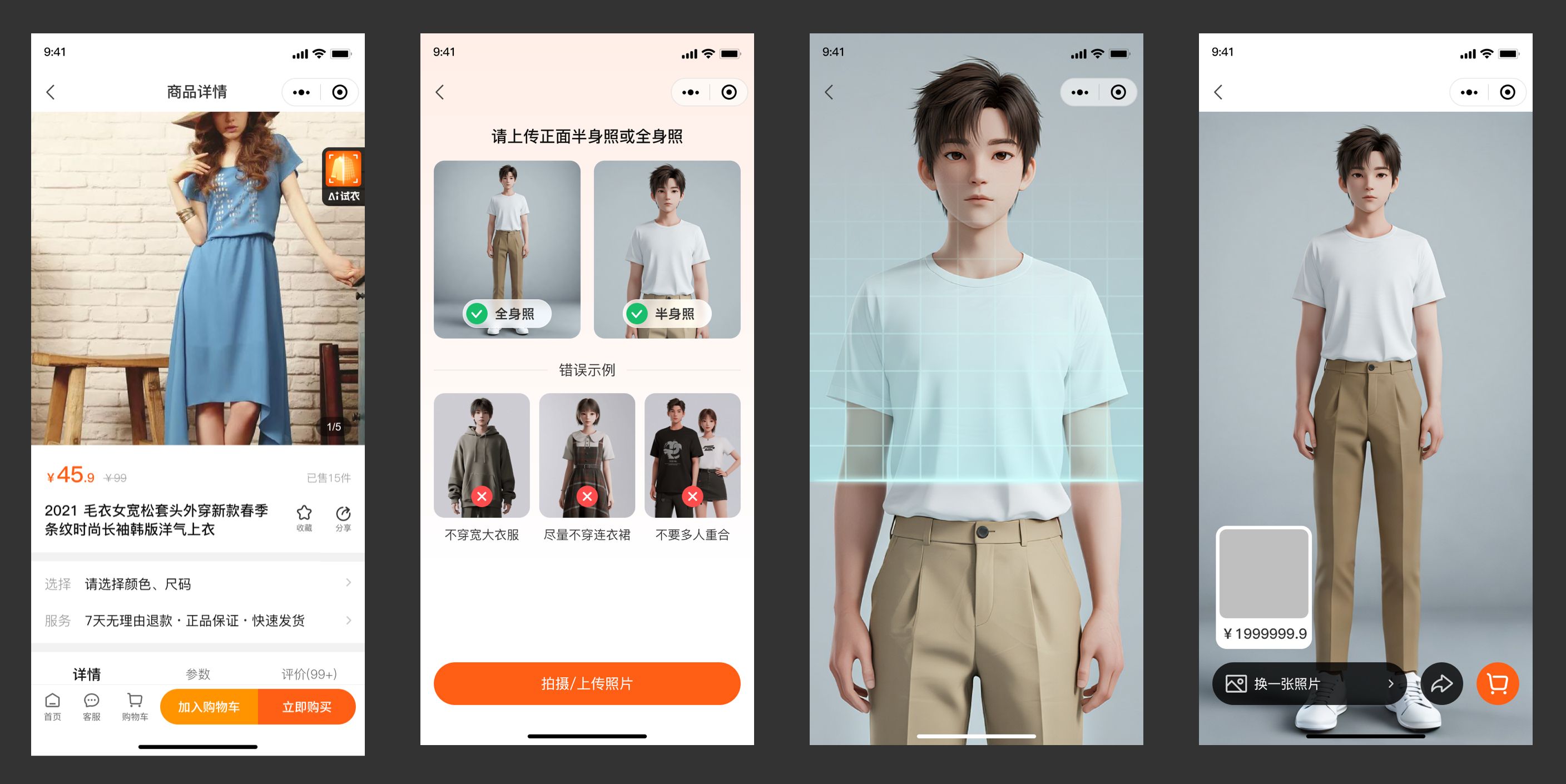 支持买家随手传图即刻试穿,在线预览真实穿搭效果