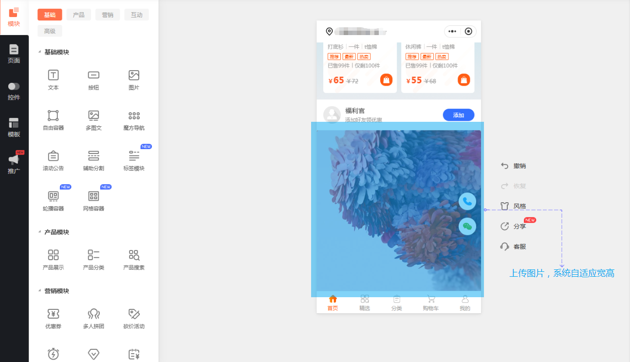 商城小程序自由容器支持图片自适应
