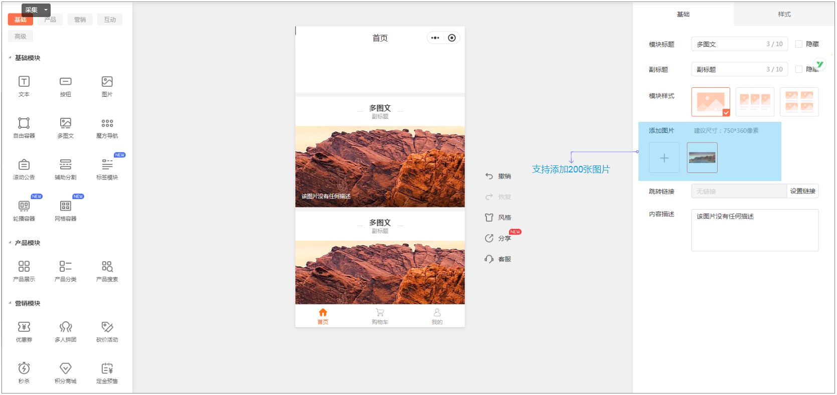 多图文模块:数量由原来的8个提高到200个