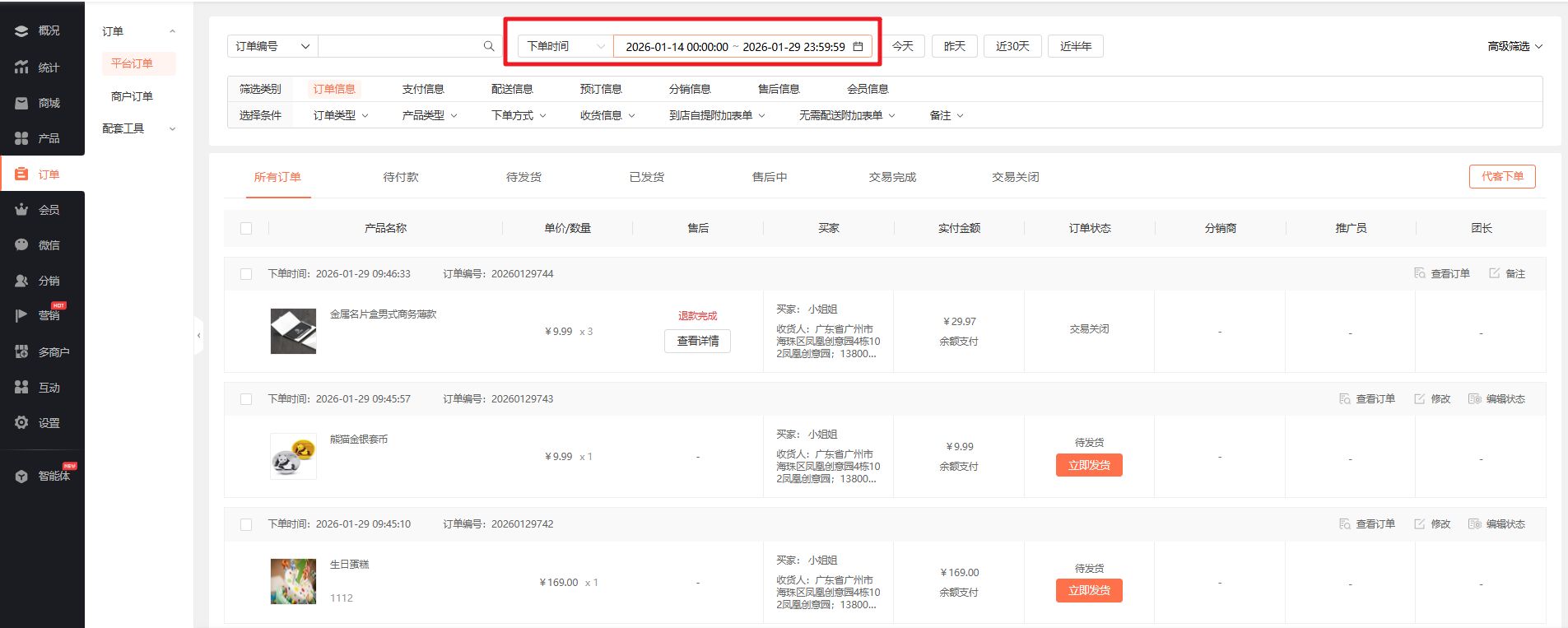 如果订单管理导出的是 2026-01-14 到 2026-01-29 的数据