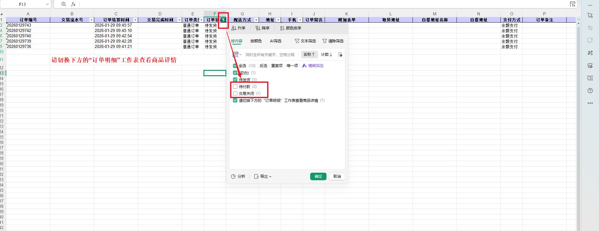 核心原则:待付款 / 交易关闭的订单属于无效付款订单,需在表格中剔除,不纳入统计。