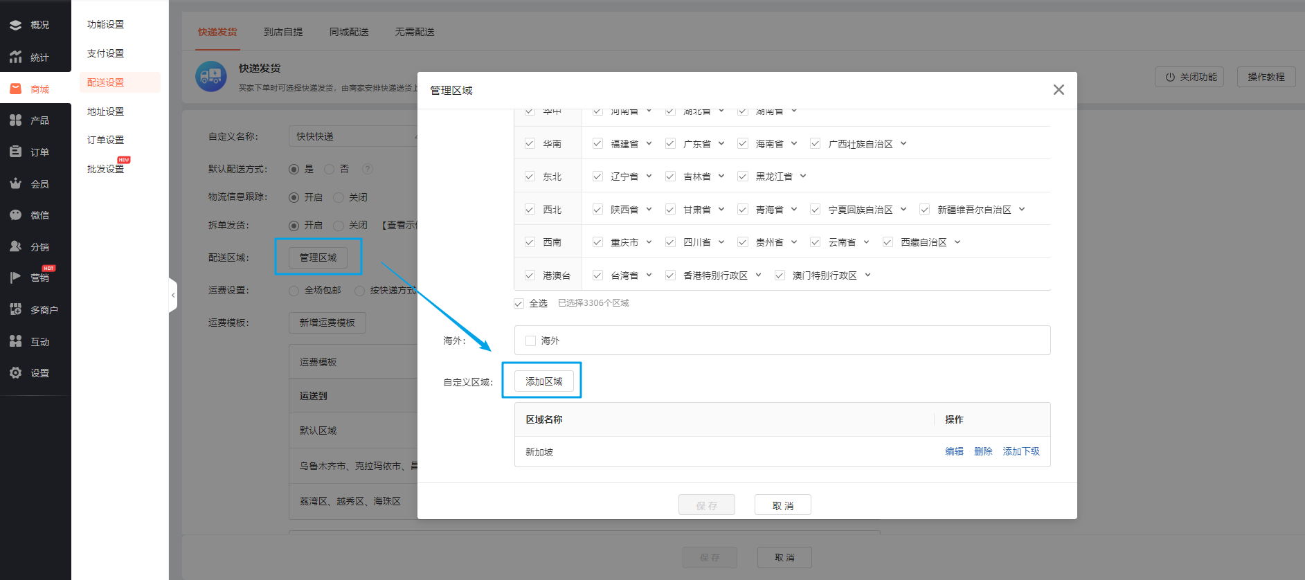 本次更新将上调快递发货-配送区域-自定义配送区域-添加区域数量上限