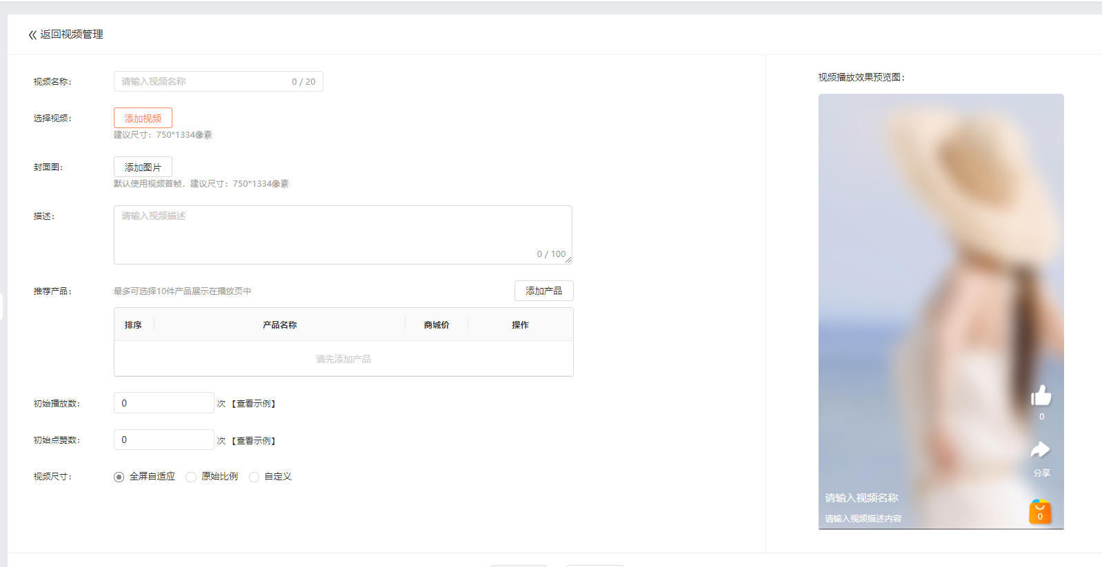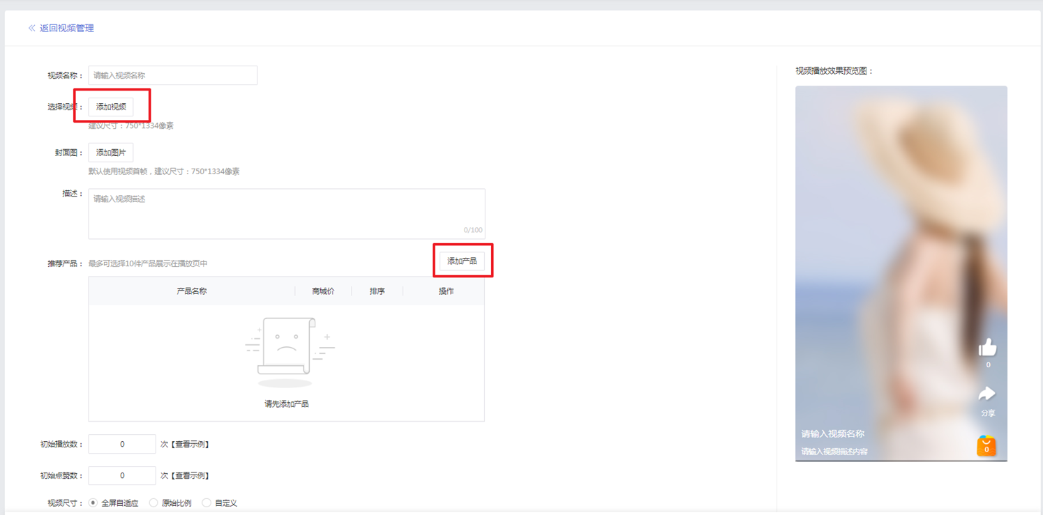 - 初始播放数、初始点赞数:支持设置初始值,将与真实值叠加后向客户展示。