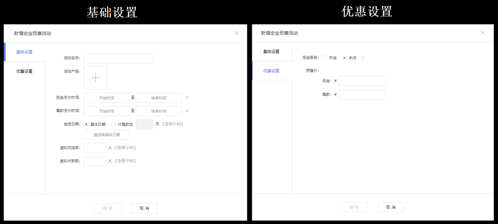 ② 尾款支付时间:商家可通过自身运营策略,来设置活动可支付尾款的时间区间,更好地刺激客户支付尾款下单。