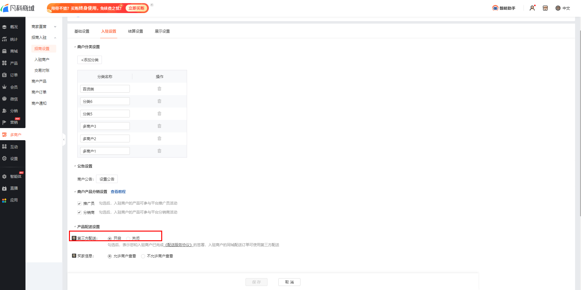 3.支持入驻商户接入微信官方同城配送服务,支持达达配送、顺丰同城。