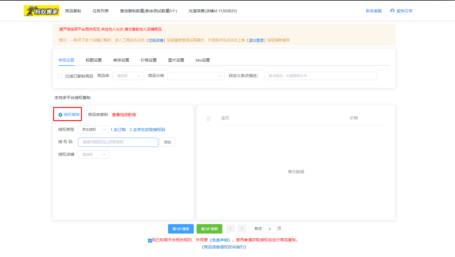 ② 从电商平台导入:蚂蚁搬家、导入淘宝CSV