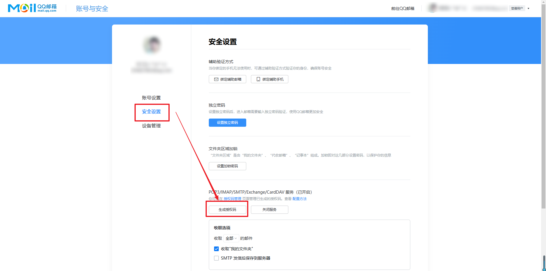 点击【设置-POP3/SMTP/IMAP】进入开启服务页面。